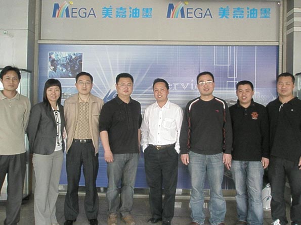2008年4月26日重慶創(chuàng)意工藝標(biāo)牌制造有限公司王總一行在重慶恒美印刷器材經(jīng)營(yíng)部喻總的帶領(lǐng)下來(lái)我司參觀指導(dǎo).著重與我司交流了現(xiàn)在重慶貼花市場(chǎng)的要求進(jìn)行了詳細(xì)的交流,并肯定了我司貼花油墨在市場(chǎng)上的品質(zhì)。