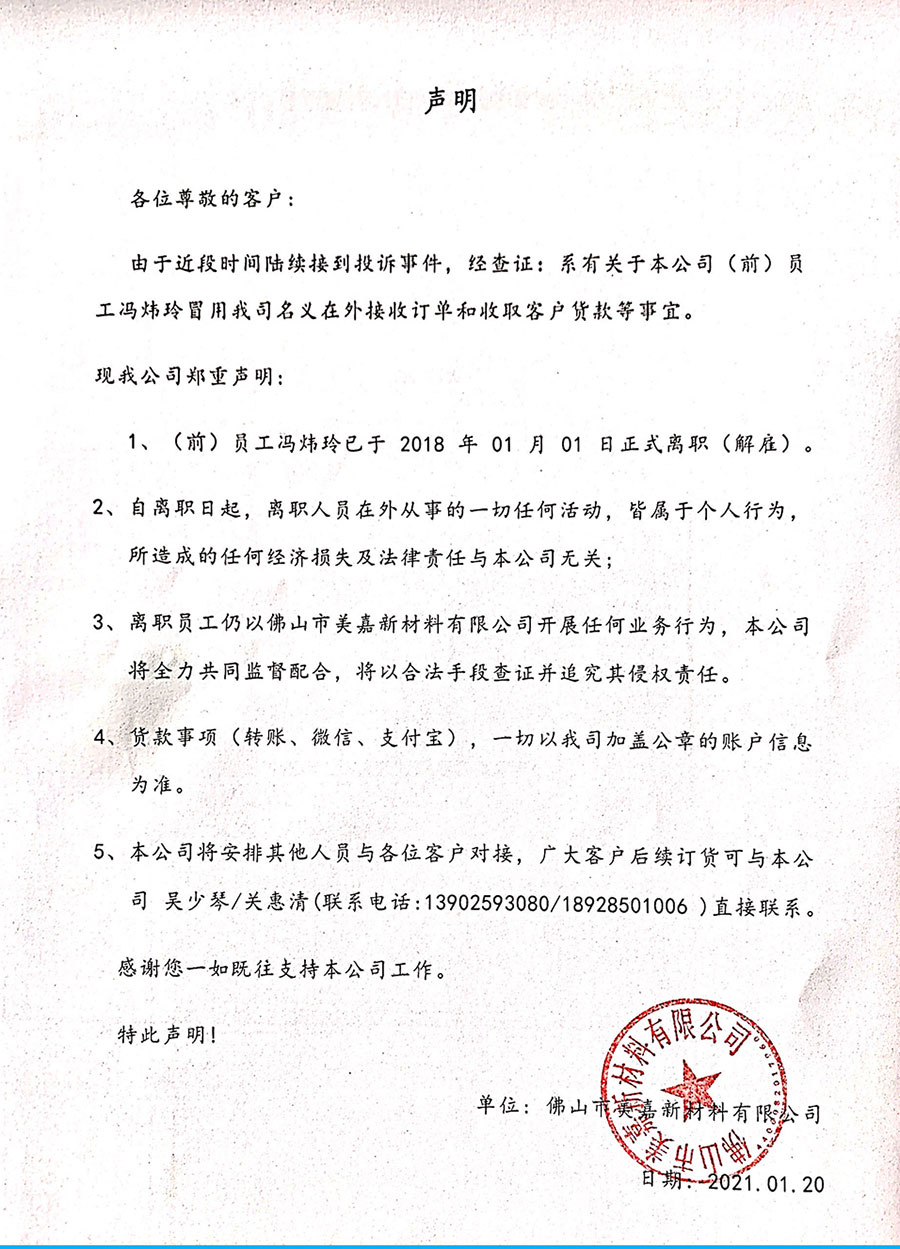 頁(yè)面版權(quán)所有?2015 佛山市美嘉新材料有限公司 地址:中山市黃圃鎮(zhèn)興圃大道西111號(hào) 電話0760-23223338 備案號(hào):粵ICP備17154145號(hào) 粵公網(wǎng)安備44060802000302號(hào)